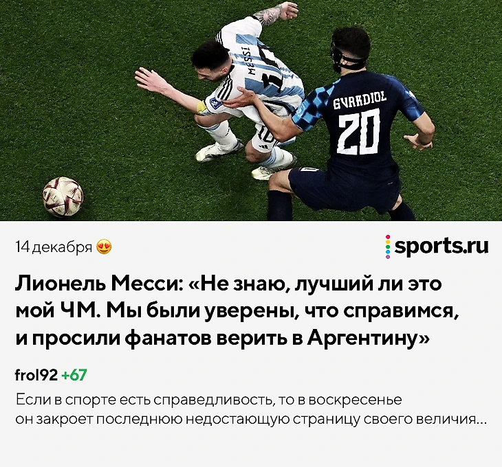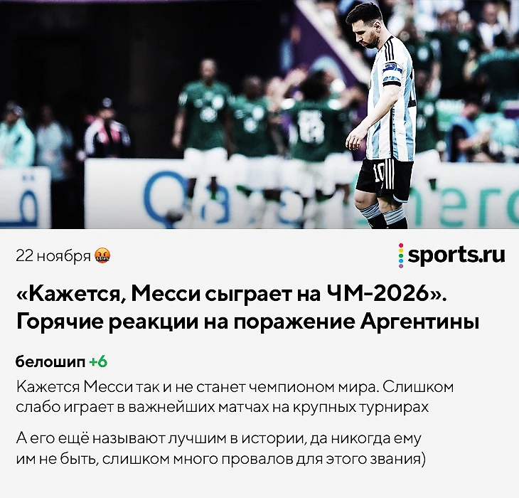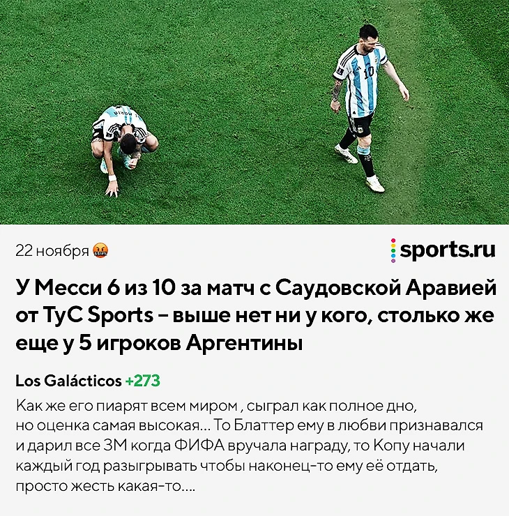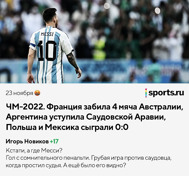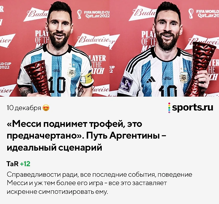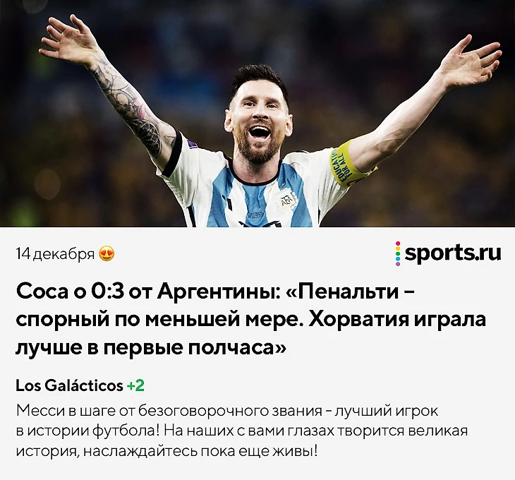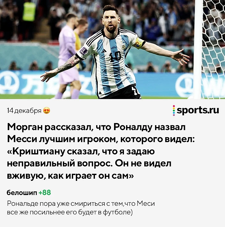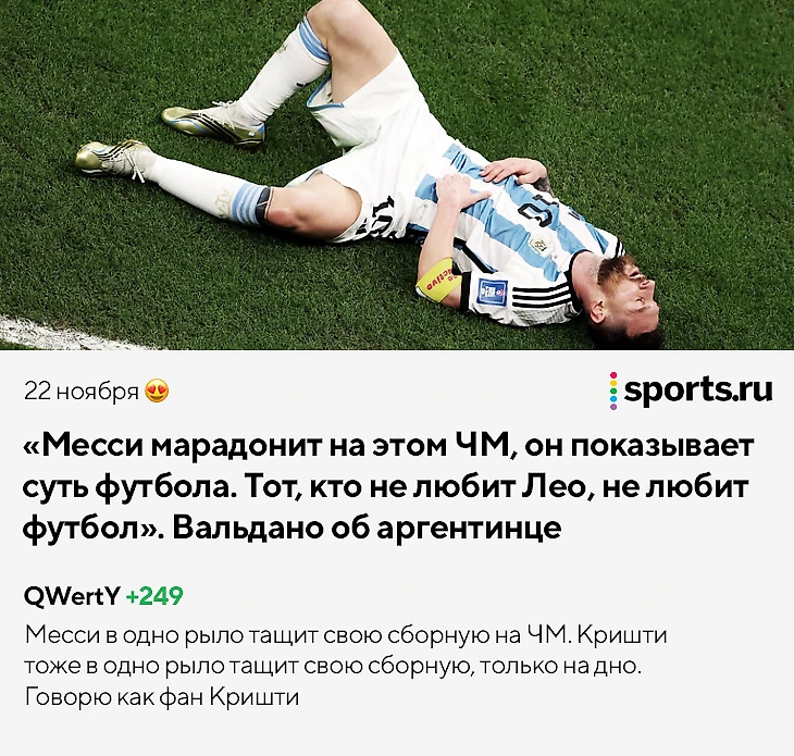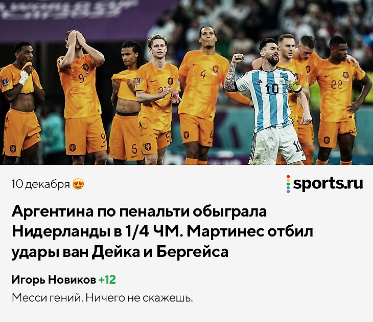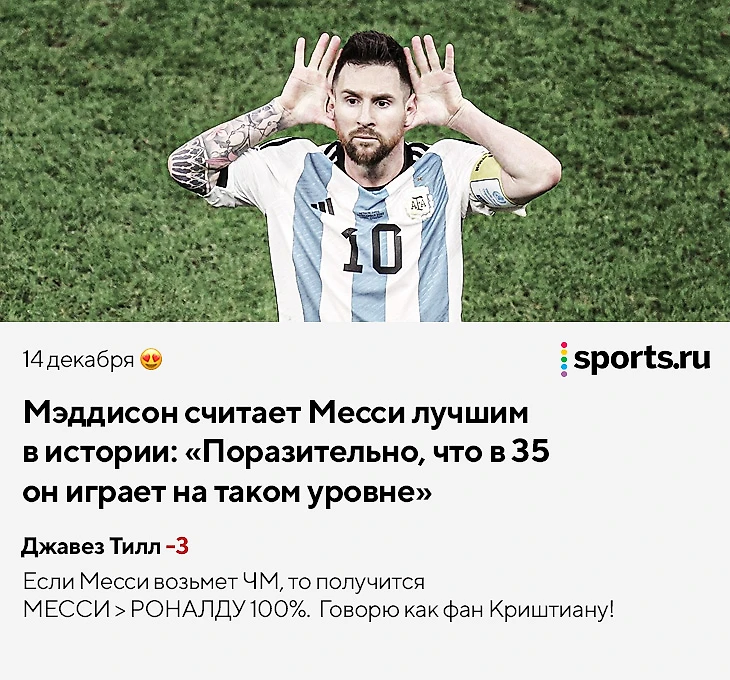 4 декабря, 00:44 | К новости Фердинанд об игре Месси против Австралии: «Практически богоподобно. Лучшее индивидуальное выступление на этом ЧМ»