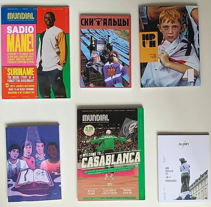 Конечно, Mundial посоветую, это очень классный журнал, лично для меня — образец идеального футбольного издания. Те, кому больше интересен фото-контент, могут полистать журнал Glory. Каждый выпуск редакция посвящает разной стране и оформляет журнал красивыми футбольными кадрами и небольшими текстовыми историями. No Place Like Home еще хороший журнал, там тоже есть тексты на разные темы футбольной сферы, инфографика разная. Очень высокий уровень верстки и оформления текстов.