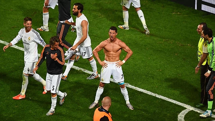 При счёте 3:1, уже в компенсированное время, Криштиану реализует пенальти и устраивает театральное празднование: раздевается, позирует перед камерами.