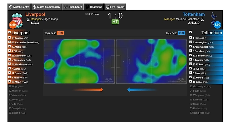 Основные действующие лица: Робертсон и Трент. 51 и 56 касаний соответственно (статистика за 1-й тайм). Лидеры в команде по этому показателю.