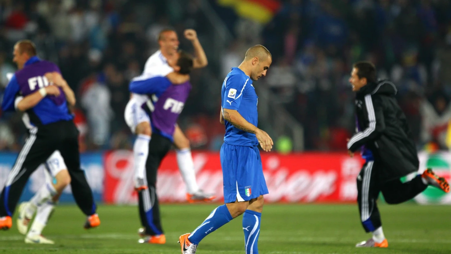 А у итальянцев катастрофа – 2 очка в группе с Парагваем, Новой Зеландией и Словакией. Побеидтели прошлого турнира очень быстро сложили полномочия и положили начало традиции – действующие чемпионы мира не выходят из группы на следующем мундиале.