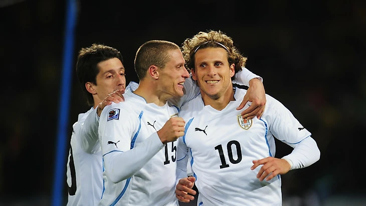 Диего Форлан дублем в ворота хозяев начал путь к званию лучшего игрока турнира.