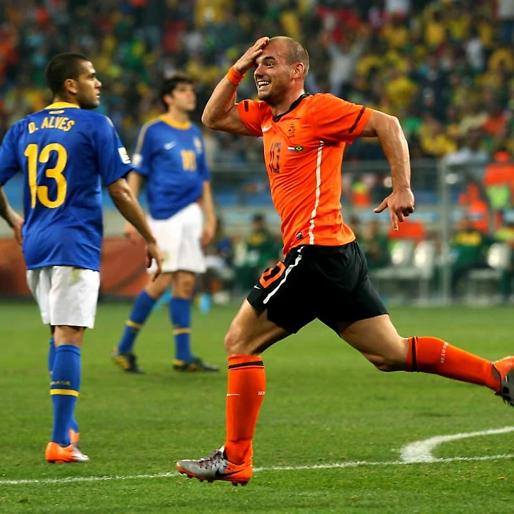 Уэсли Снейдер оформляет дубль в четвертьфинале с Бразилией. Не, ну этот парень точно в конце года должен взять «Золотой мяч»!