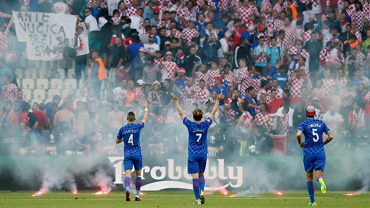 Встреча Хорватии и Чехии тоже была прервана. Но не из-за града: хорватские фанаты закидали поле пиротехникой, протестуя против своей же федерации футбола. Доиграли вничью – 2:2.