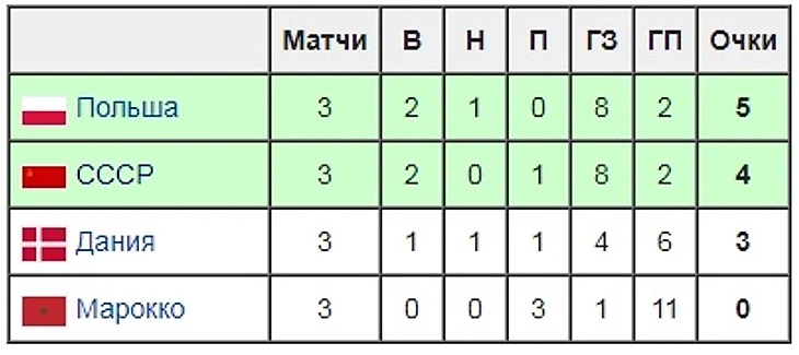 В последнем туре СССР разнес Данию 4:0, но рассчитывать на то, что Польша потеряет очки с марокканцами, было глупо. Команда Александра Пономарева осталась на втором месте в квартете, а в финал выходил только победитель группы.