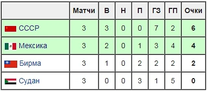 Первый раунд советские футболисты прошли рационально: не напрягаясь, выиграли у Бирмы, Судана и Мексики.
