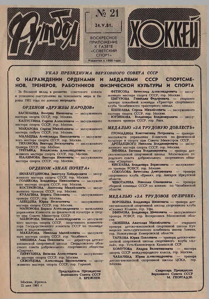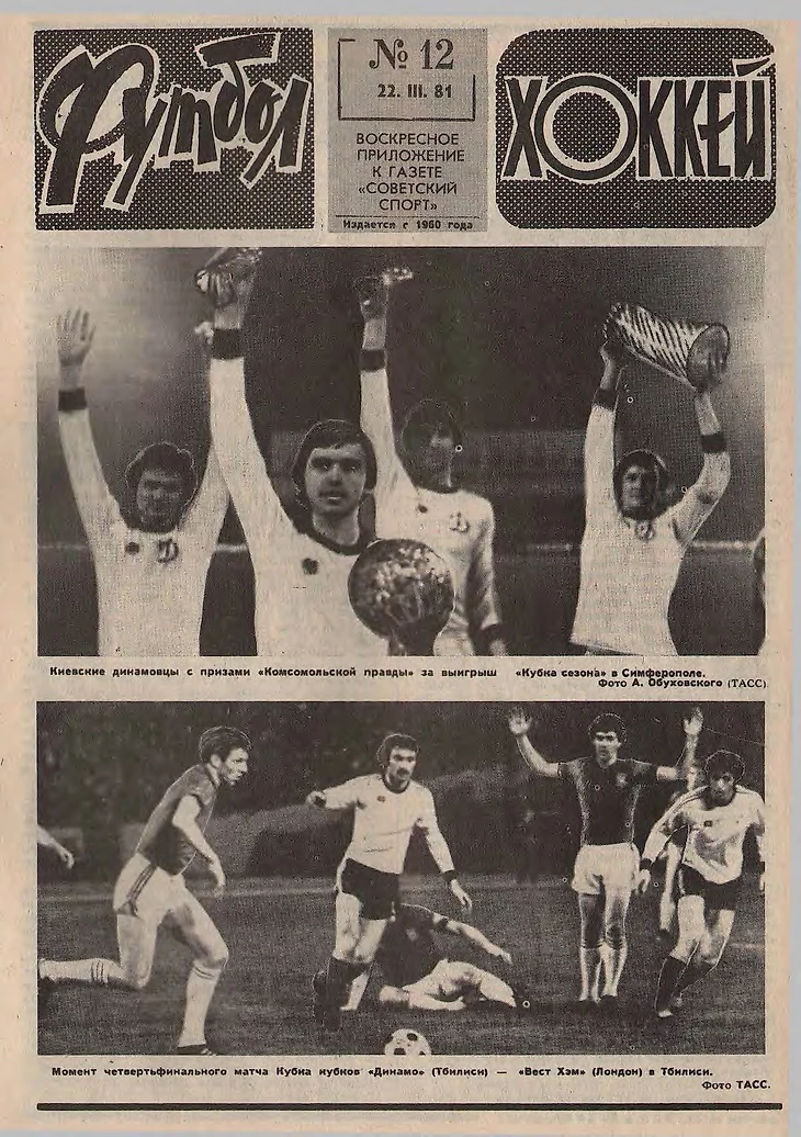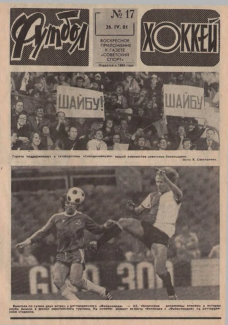 Советские хоккеисты вынесли Канаду 8:1 в Монреале, тбилисские динамовцы выиграли Кубок кубков. 1981 год в обложках еженедельника «Футбол»