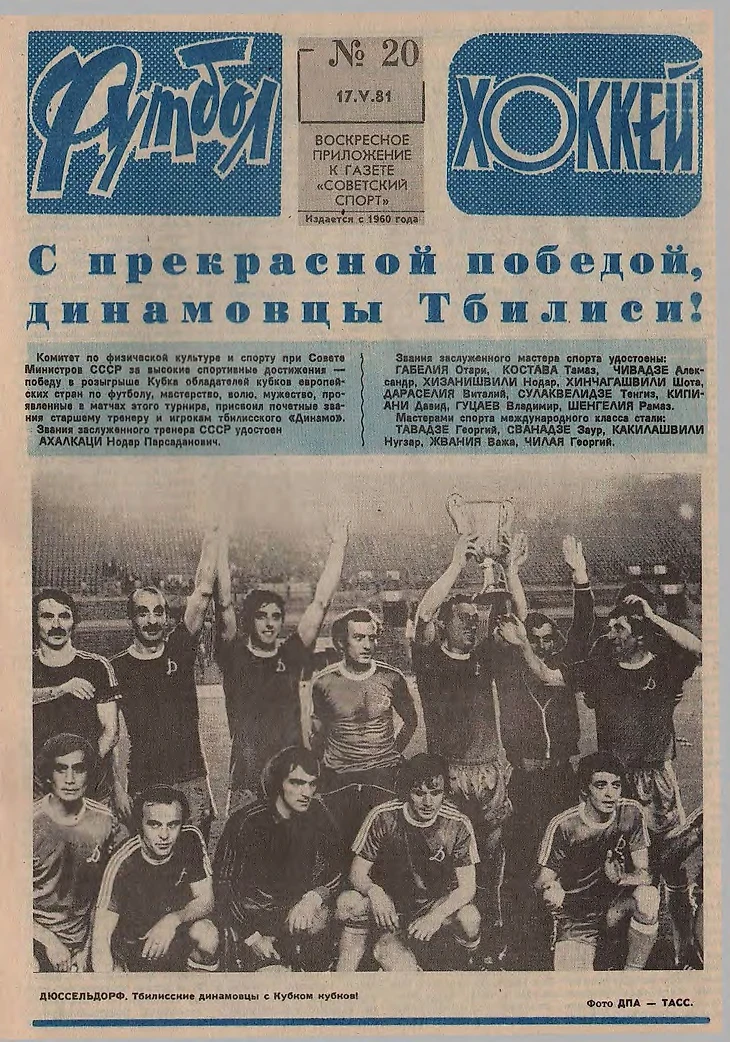 13 мая 1981 года – памятный день в истории советского футбола. Тбилисские динамовцы выиграли Кубок кубков, обыграв в финале «Карл Цейсс» из Йены!
