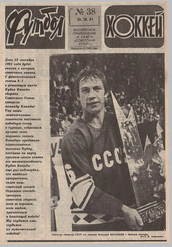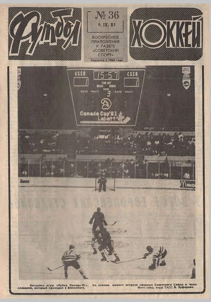 Стартовал Кубок Канады. В первой игре сборная СССР сыграла 1:1 с Чехословакией.