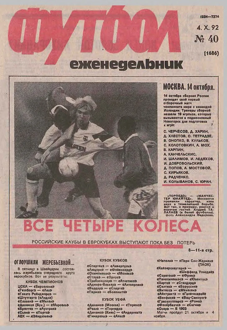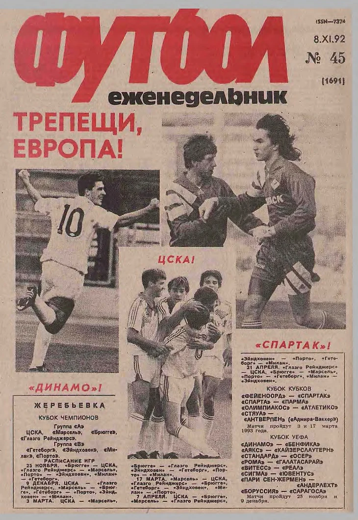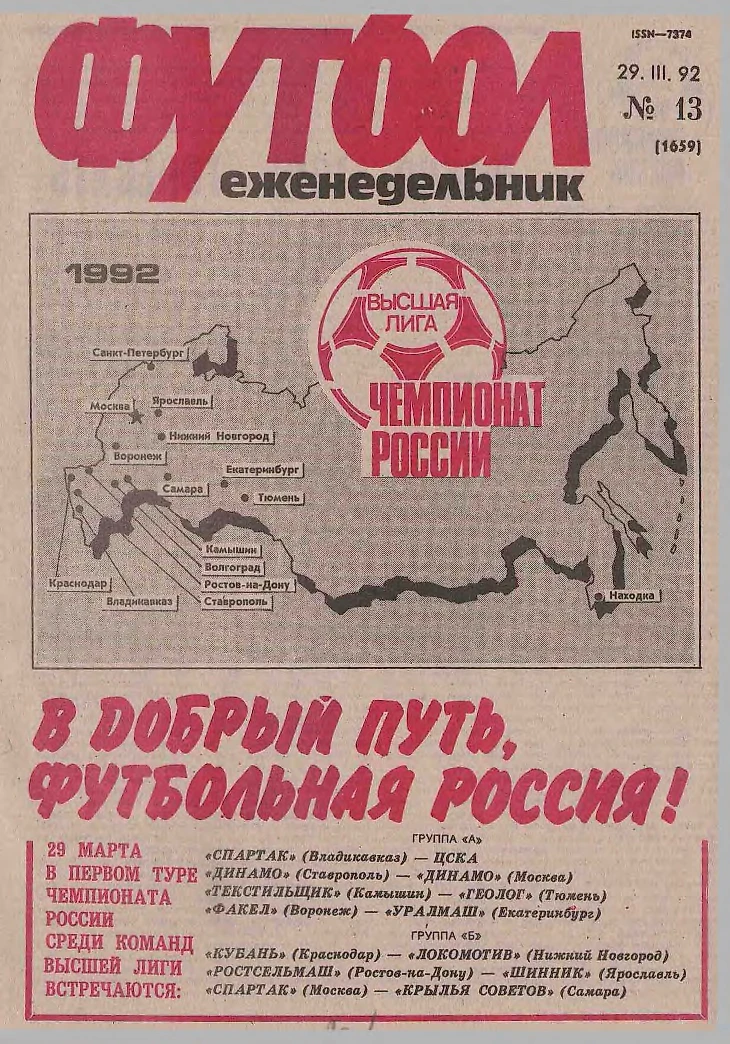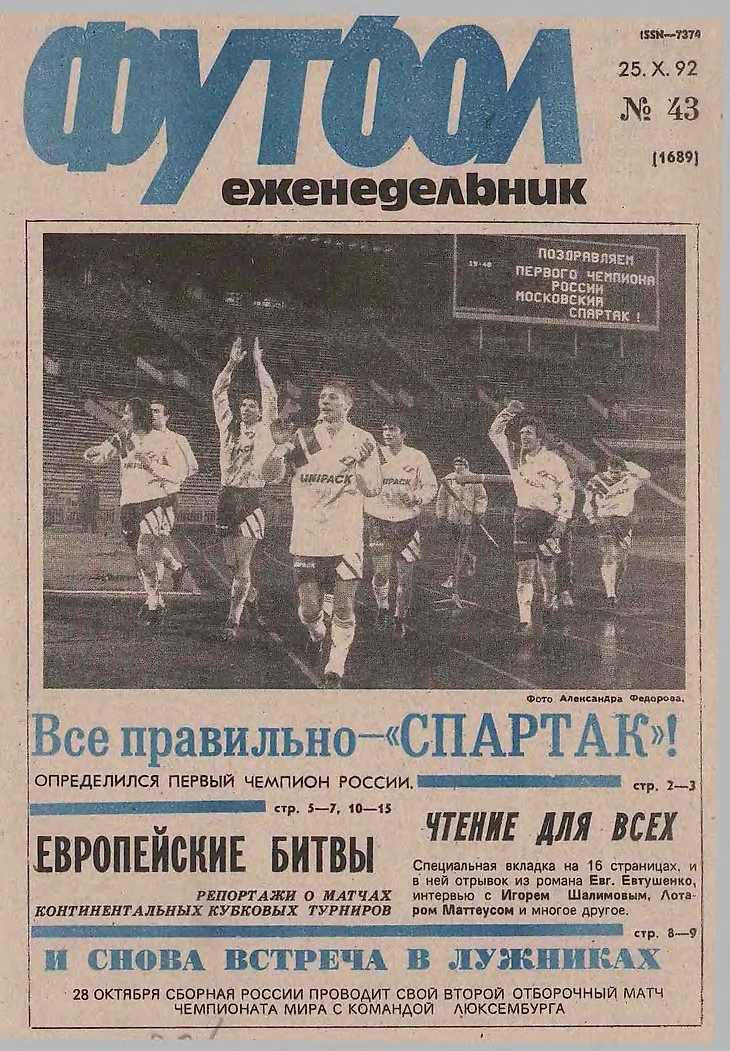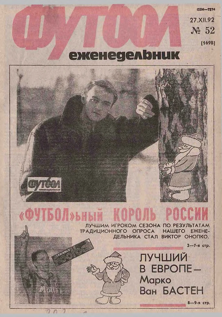 «Спартак» – первый чемпион России, первый матч сборной, Онопко – король футбола. 1992 год в обложках еженедельника «Футбол»