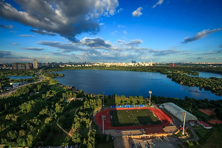Футбольный клуб «Строгино» играет на стадионе «Янтарь». Рядом с одним из самых популярных мест летнего отдыха москвичей – пляжами Большого Строгинского затона.