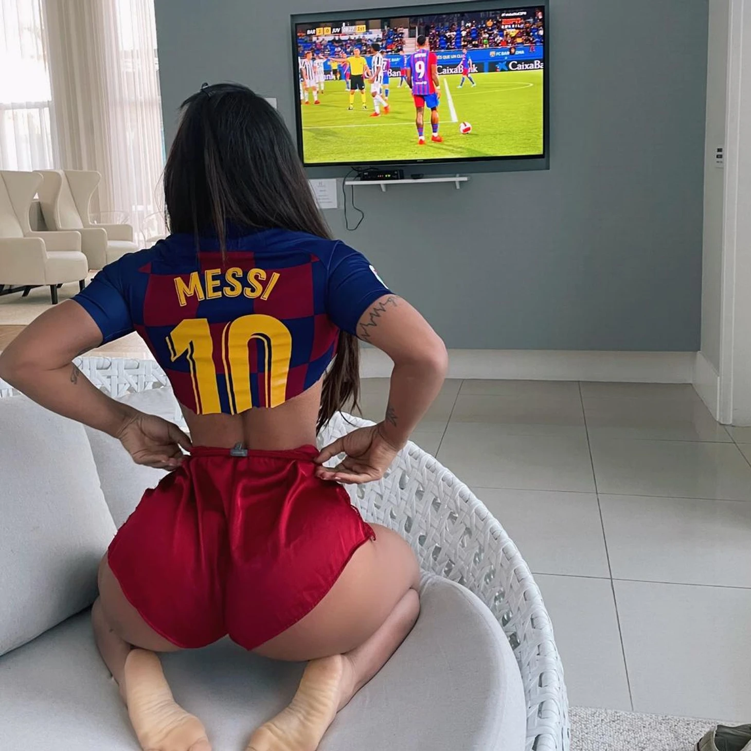 Дама обожает Месси – у нее даже есть две татуировки, посвященные Лео. Одна на достаточно интимном месте.