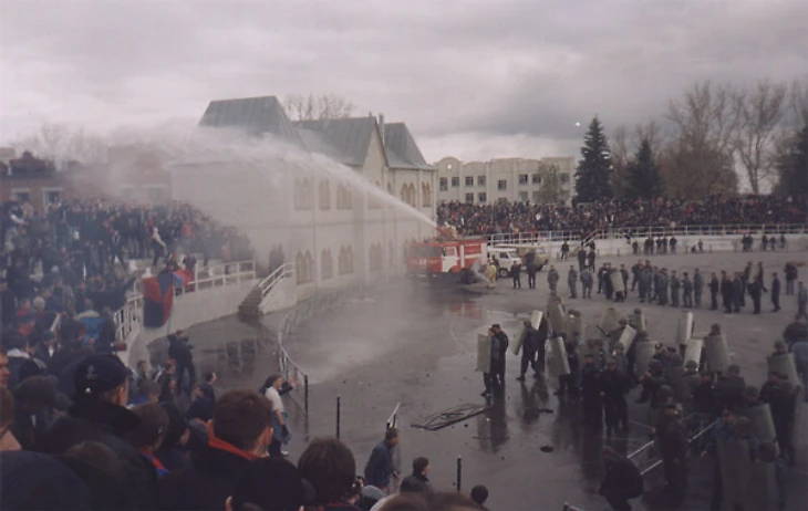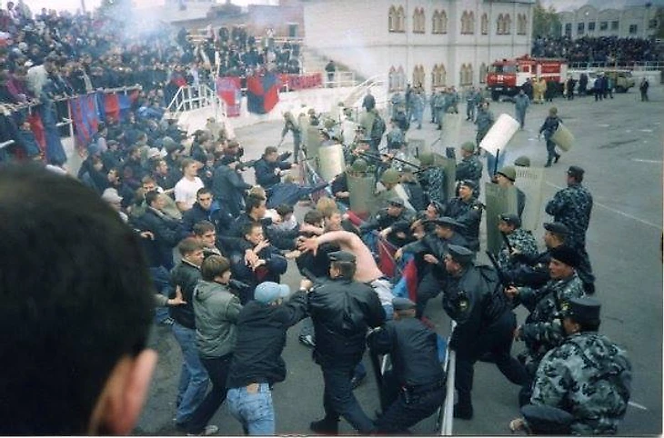 Но запомнился этот матч вовсе не результатом. Выезд в этот приятный и тихий город Липецкой области стал одним из самых памятных и насыщенных на события за всю историю фан-движения ЦСКА. Гостевая трибуна почти все 90 минут матча провела в непрерывной драке с милицией и ОМОНом.