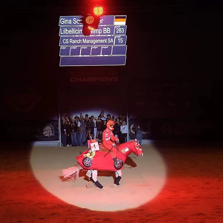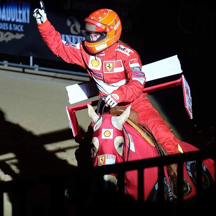 В ноябре 2019 года Джина выступила на турнире в Вероне и устроила шоу в честь отца. Она выехала на арену в шлеме и комбинезоне «Феррари» времен выступлений Шумахера за Скудерию, а лошадь была облачена в наряд, стилизованный под красный болид начала 2000-х, на котором даже присутствовало антикрыло с надписью «Horse Power» – «Лошадиная сила».