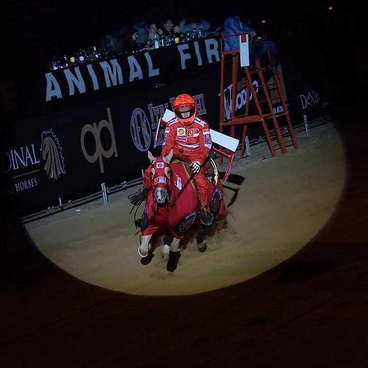В ходе представления Джина с помощниками даже имитировали замену шин и «дозаправку» лошади – что-то вроде пит-стопа.