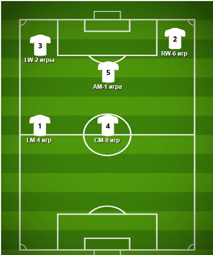 Лэмпард использовал его уже на 5 позициях, чаще всего в середине поля (4 гола-2 передачи) и на позиции правого вингера (3-гола)