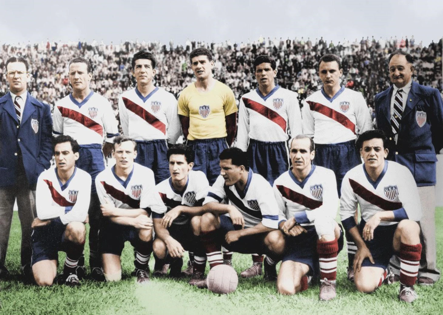 Сборная США, которая состояла сплошь из любителей, проиграла Испании. Игроки американцев совмещали работу и футбол: кто-то был водителем, кто-то учителем, почтальоном. Один из игроков той сборной вообще был вынужден покинуть стан команды раньше времени, потому что мог быть уволен с основной работы. К матчу с англичанами "звездно-полосатые" подошли в ужасной форме - последние 7 матчей были проиграны с общим счетом 2:45! Даже норвежцы, в составе которых не было никого наподобие Холанда умудрились накидать американцам 11 безответных мячей.