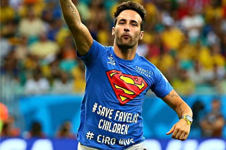 Это Марио Ферри, для которого футбольное поле не является чуждым. Итальянец 9 лет играл в футбольных клубах низкого калибра и числится на данный момент в итальянском "Кастель Ди Сангро", который захаживал в Серию Б в 90х. Ферри прославился на футбольном поле, но не за свои умения, а за то, что выбегал на поле, пытаясь привлечь внимание к социальным проблемам.