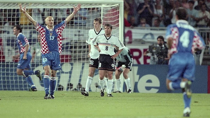На чемпионат мира 1998 года пришлось пробиваться с нервами - хорваты угодили в стыки, где попали на сборную Украины. "Пламенные" смогли справиться с командой Йожефа Сабо не без вопросов - и в Загребе, и в Киеве судьи спорно не засчитали по одному украинскому голу. В итоге Хорватия доехала до Франции, где сотворила еще одно чудо - дошла до полуфинала, разгромив в четвертьфинале немцев со счетом 3:0!