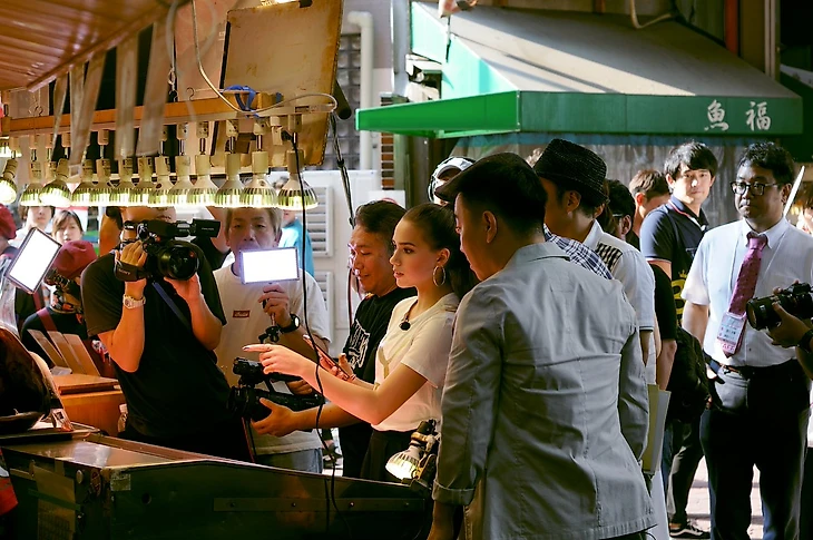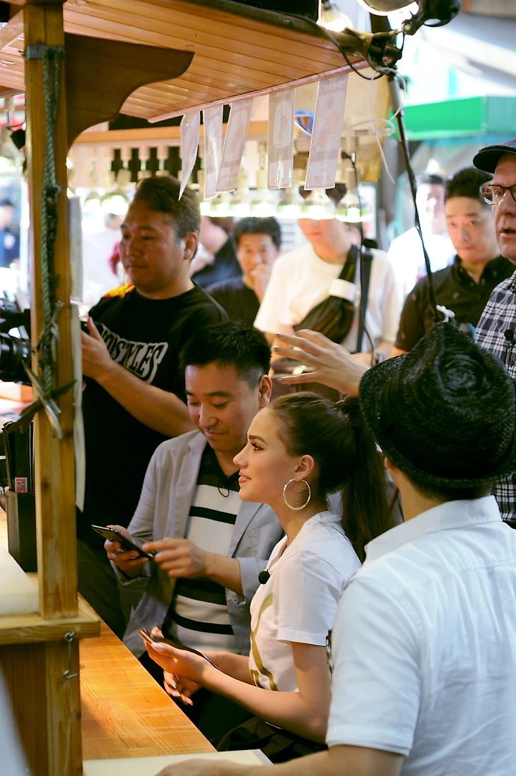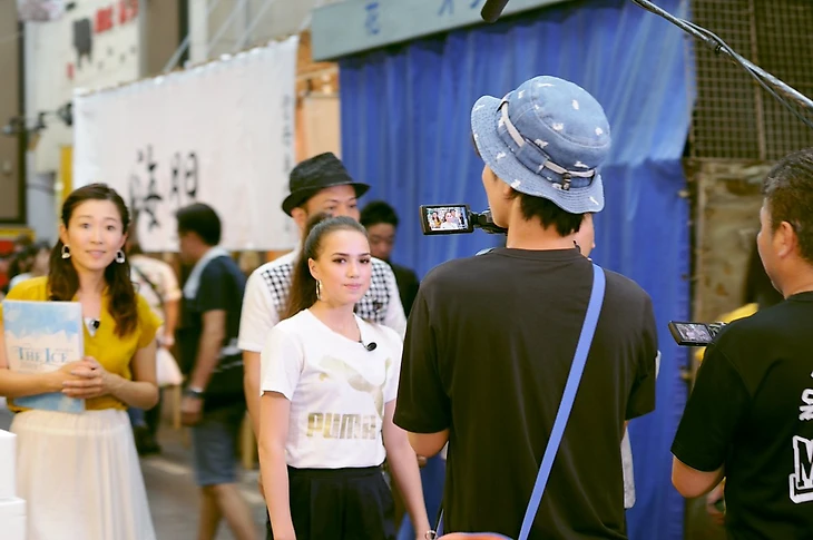 Алина инспектирует рынок "Kuromon Ichiba Market" в Осаке, Япония, с командой японского ТВ канала, значит скоро будет новая передача с ней в Японии.