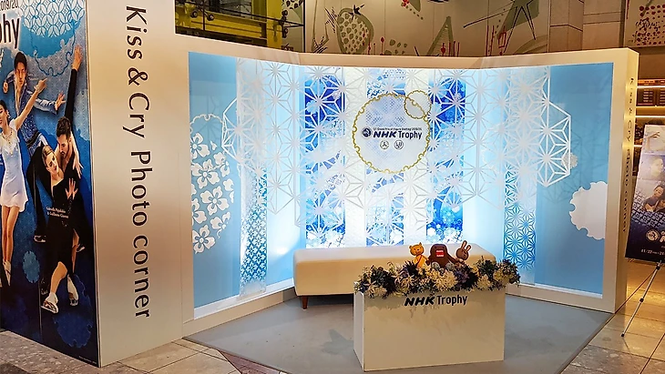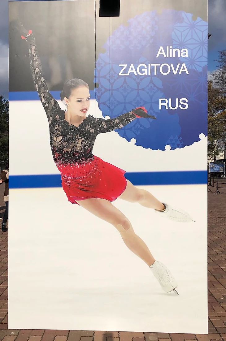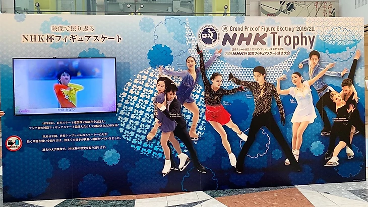 Перед ареной в Японии стоит огромный четырехсторонний стенд (в виде куба) с изображением Юзуру Ханю и Алины Загитовой по двум противоположным сторонам и рекламы NHK Trophy по двум другим сторонам, ссылка на видео: