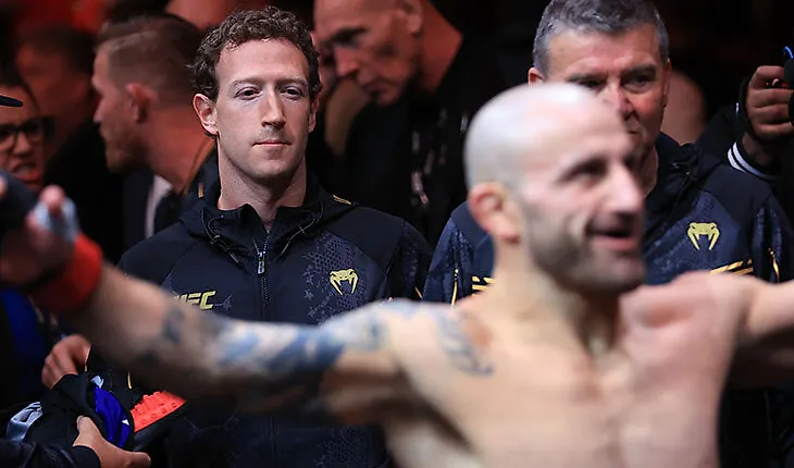 Яркий Цукерберг на UFC 298: секундировал Волкановски, хлопал глумлениям Двалишвили