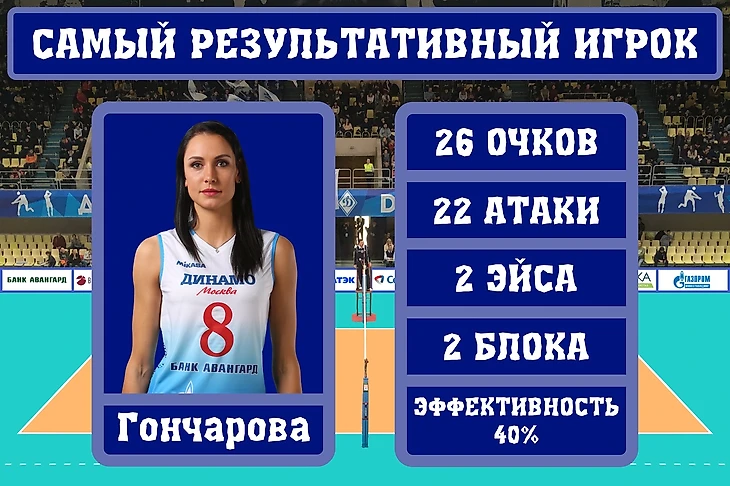 Самым результативным игроком матча в составе команды «Динамо» (Москва) стала Наталия Гончарова! На ее счету 26 очков!