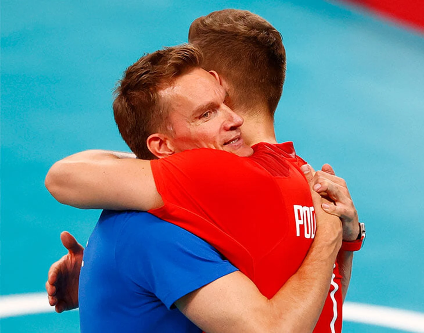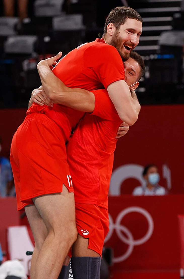 Перелом случился в третьем сете (при счете 1-1 по партиям): наши отставали 12:20 – потом на площадку вышли Ярослав Подлесных, затерзавший соперника подачей, и Ильяс Куркаев, усиливший блок. Важно: они почти не играли в Токио, выходили в нескольких эпизодах на групповом этапе, так что само решение с заменами – сюрприз.