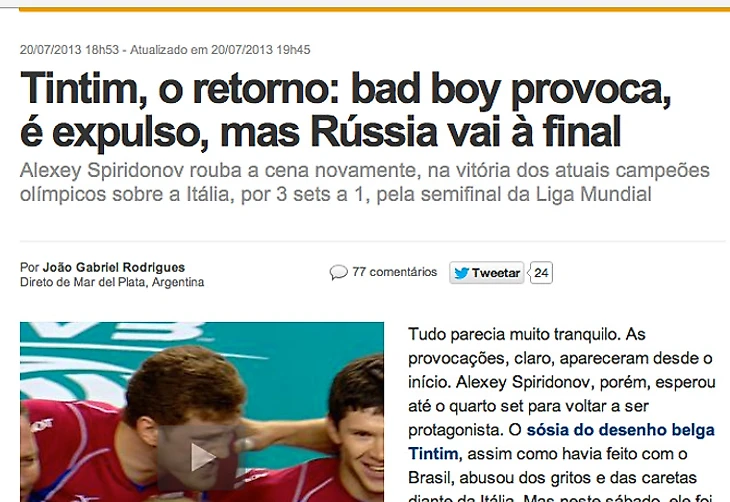 Авторитетное издание Globo сделало Спиридонова героем недели и придумало ему прозвище «Тинтин» – из-за сходства с героем популярного комикса «Приключения Тинтина».