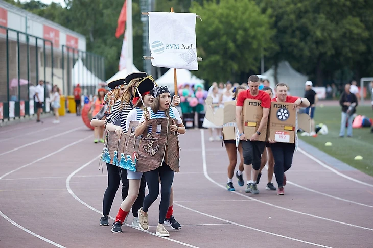 Командный креативный забег Fun Run – это всегда весело, позитивно, ведь участники бегут не за победой, а ради удовольствия и эмоций. Турнир представляет собой забег команды из 4 участников, связанных между собой скотчем, изолентой, веревкой, или картонным основанием. Команда может декорировать свой совместный костюм любым образом, но так, чтобы все 4 игрока находились внутри. А дальше в таком виде команде надо будет пробежать 200 м. Побеждает тот, кто первый доберется до финиша. А подарки и медали получат первые три команды, а также обладатели звания «Креативный костюм» и приза зрительских симпатий.
