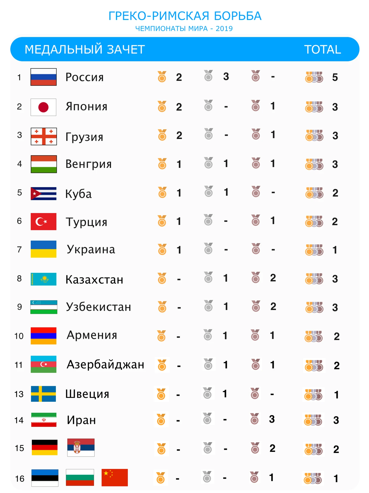 Завершился чемпионат мира по греко-римской борьбе в Нур Султане (Казахстан) - первый лицензионный турнир к Олимпиаде в Токио 2020. Боролись в 10 весовых категория, среди которых только 6 Олимпийские: 60, 67, 77, 87, 99, 130.